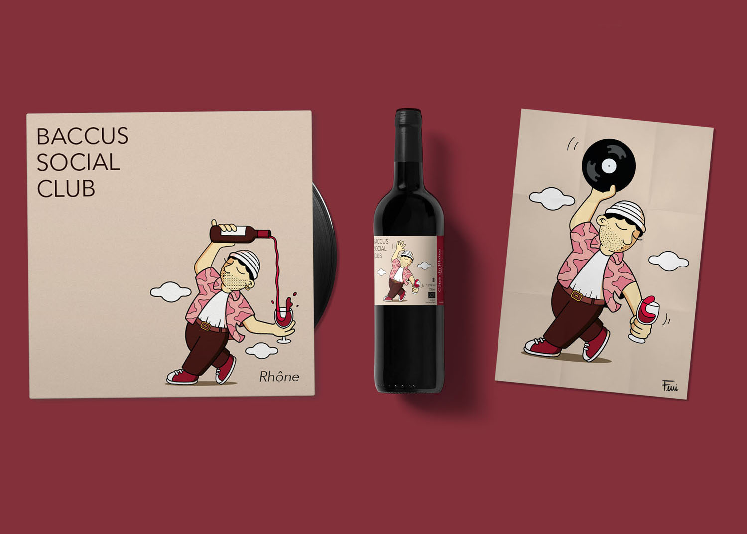 Avec cette première box, le concept est simple : une région, une bouteille de vin de ce terroir, un vinyle réunissant plusieurs artistes locaux de cette même scène, et une illustration au format A4 d’un artiste, toujours du même coin. Et pour cette première édition, il y a aussi un tote-bag en cadeau.