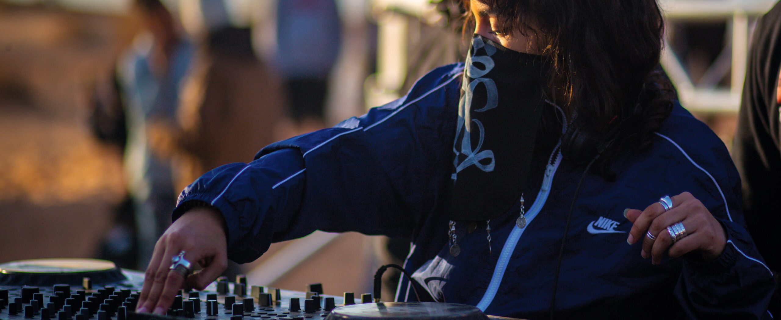Faël, originaire de Kabylie, a grandi à Alger où elle a découvert la scène techno dans des soirées organisées par des amis. « J’y ai développé un amour pour la musique électronique. À cette époque, c’était la trance qui m’envoûtait. Cependant, grâce à mes voyages, j’ai découvert de nouveaux horizons musicaux, notamment la techno et la musique expérimentale. Cela a commencé à Paris, à Concrete ou à La Machine, puis cela s’est poursuivi à Amsterdam et à Berlin, notamment au Berghain, où j’ai été captivée par l’énergie et la créativité des scènes musicales locales. » Dans la foule, des femmes portent un chèche afin de préserver leur anonymat, et rappeler l’esprit du désert. Ce voile est traditionnellement porté par les Touaregs pour se protéger du soleil et du vent désertique sec. D’autres arborent des tenues aux antipodes de celles conditionnées par la société algérienne. « Dans certaines raves, des Algériens viennent avec un style vestimentaire berlinois », commente Rafik.