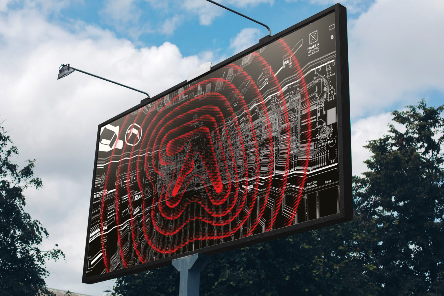 De plus, le fond des posters montrent bien les composants d’une machine, déjà analysés par le blog tech Synth Anatomy qui a pu repérer un nom : « Novation X Station », une gamme de produits Novation. Aphex Twin aurait-il développé avec la marque une machine issue de cette gamme de produits ?