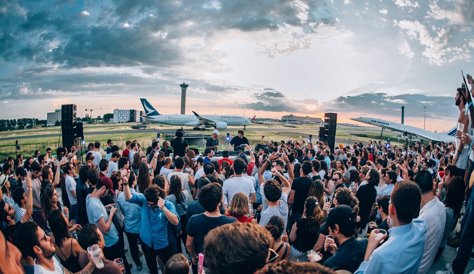 Ce jour-là, la météo est au beau fixe, pas un nuage à l’horizon. « Ça va sûrement faire des beaux plans au coucher de soleil », s’impatientent Anatole et Derek sous le petit barnum qui leur sert de régie. Ils sont là depuis 9 heures du matin pour préparer leur émission du jour : Tale Of Us à l’aéroport Paris-Charles de Gaulle, en direct sur Facebook à 21 heures. Derek, fana d’aviation depuis qu’il est enfant, est aux anges. Paris Aéroport ravi de pouvoir présenter CDG comme autre chose qu’un lieu de passage. Les premiers arrivants se sont faits beaux. Alors que tout le monde trépigne en attendant le début du live, côté technique, tout est testé, retesté, avec beaucoup de calme. « On a évidemment des coups de stress, mais il y a toujours une solution. Et s’il n’y en a pas, tant pis, on ne peut rien y faire, ça ne sert à rien de communiquer cette angoisse à tout le monde. Mais maintenant, on travaille toujours plus ou moins avec la même équipe, ça roule tout seul », explique Pol en désignant la petite quinzaine de techniciens s’afférant sur cette terrasse de la Maison de l’Environnement, à deux-pas du siège de Paris Aéroport. Seuls les avions circulant juste à côté et quelques « il fait chaud » de circonstance viennent troubler la projection de Porco Rosso (c’est la semaine du Cinéma, et le CNC est partenaire de l’émission) et les préparatifs de la soirée.