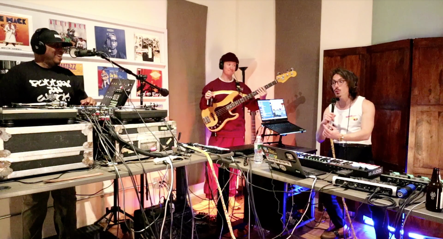 Les familiers de la plateforme Twitch le connaissent bien : Marc Rebillet est artiste musicien, comédien, hôte radio, dans un mélange explosif qui rend tous ses streams particulièrement divertissants et barrés. Tous les dimanches, celui qui se nomme lui-même Loop Daddy (en référence aux boucles qu’il improvise en live) tient des messes ou des brunchs musicaux, dont la dernière édition nous a laissé le sourire au lèvres, avec pour invités la légende du hip-hop DJ Premier et Brady Watt, bassiste hip-hop au groove imparable. Les trois New Yorkais y délivraient une performance mêlant les improvisations et chant de Rebillet, les scratchs experts de Premier, le tout sur la basse démente de Watt. On passe du hip-hop, à la funk, à la house pour près de deux heures non-stop à l’énergie complètement folle.