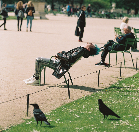 En me promenant avec une moustache bleue dans le me?tro, je me tape beaucoup de regards interrogateurs de gens qui s’ennuient, ou qui ont envie de se distraire. Ils ne comprennent pas trop mais se disent “bon c’est son de?lire, moi je n’aime pas vraiment mais c’est son de?lire”. J’ai l’impression qu’il se passe la me?me chose avec PC MusicIls font du “bubblegum-core- mega-dance” qui fascine et irrite en me?me temps, comme une araigne?e tombe?e dans une barbe a? papa ou les chiens en plastique brillants de Jeff Koons au Cha?teau de Versailles. A.G Cook et ses gars ont un son ine?dit, dansant et tre?s anglais. Ils sont un peu des artistes contemporains du son.