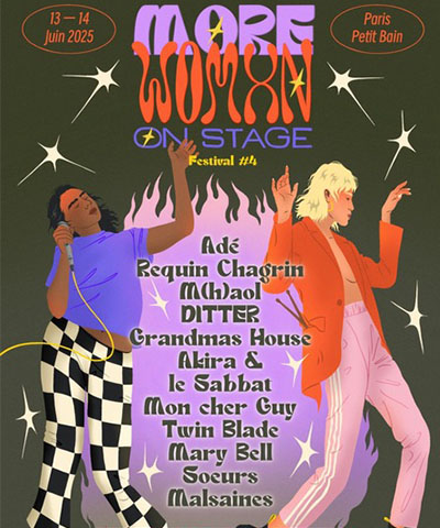 Les 13 et 14 juin, l’association poursuit encore et toujours cette inébranlable vocation avec la quatrième édition de son festival. De retour au Petit Bain, les équipes de More Women on Stage vous invitent à venir vous frotter à deux soirées survoltées. Une furieuse soirée rime avec un line-up fiévreux. Ça tombe bien, tout a été finement programmé pour l’occasion.