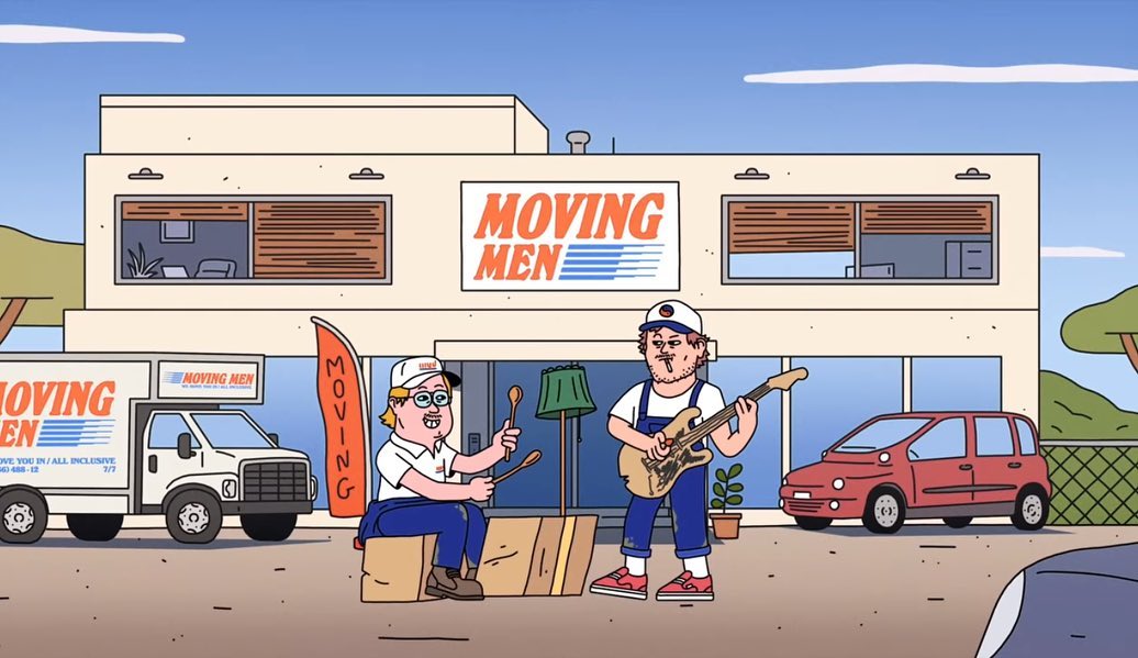 Dans leur clip animé inspiré de Rick et Morty et réalisé par Alexandre Nart, Myd et Mac DeMarco jouent les déménageurs un peu nuls et un peu drogués, éternels casquettes sur la tête et clopes au bec. On y trouve des tas de clins d’œil et références, comme cet hommage à FatBoy Slim à 0:44 (en 2019, Myd expliquait à Radio Nova comment l’album Halfway Between the Gutter and the Stars de FatBoy Slim avait changé sa vie), ou encore lorsqu’ils volent à 1:50 la grande croix chrétienne d’une église pour aller l’installer derrière les platines de Gaspard et Xavier de Justice.