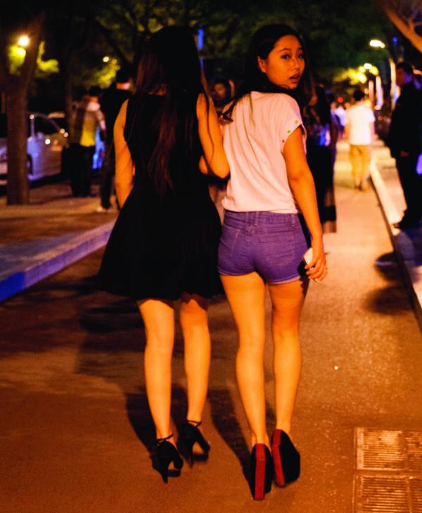 On laisse Fanyan à son tremplin pour partir à quelques centaines de mètres plus loin, dans un hutong de Gulou Dong Dajie, la rue des magasins d’instruments de musique, afin de saluer Lei Jun, le chanteur du groupe skinhead Misandao, déjà croisé l’an dernier au concert de La Souris Déglinguée. Lei Jun tient un restaurant de nouilles qu’il a redécoré en temple de la oi ! et du ska. Le brave homme importe de la stout d’Angleterre parce qu’il en a “marre de la pisse qui sert de bière aux Chinois”. Mais Lei Jun n’a pas toujours voué une passion au houblon. Arrêté pour avoir fumé un joint, il a été condamné à deux ans ferme. Alors qu’il croupissait en taule, un inconnu lui a proposé de le faire libérer moyennant l’équivalent de 12 000 euros, une véritable fortune. Lei Jun a payé, il est sorti du placard. Maintenant, il rembourse tous les mois et a remplacé les joints par la stout et de grandes gorgées de sirop antitussif. Adieu camarade tondu, il est temps de rejoindre le quartier des bars de Sanlitun, où j’ai rendez-vous avec mon amie Li. Au 1001 Nights, un grand restaurant oriental, Snowing Lee, une des trois danseuses employées par l’établissement (avec une Marocaine et une Ouïghoure), confie: “Ma mère est malaisienne et mon père chinois. Je suis arrivée à Pékin à l’âge de 3 ans. C’est une Égyptienne qui m’a appris à danser. J’ai beaucoup d’amies qui pratiquent la danse. Je donne des cours quand je ne travaille pas au restaurant. Pour me détendre, j’écoute de la musique arabe, je vais au cinéma et je fais du shopping avec mes copines.”