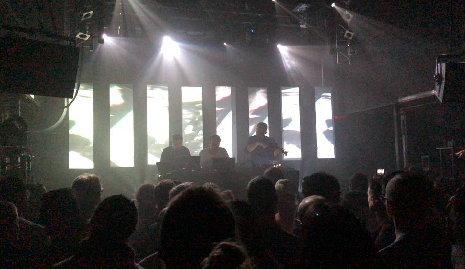 On peut afficher trente ans de carrière, un peu d’embonpoint et attirer à ses concerts un public qui a grandi dans un monde non connecté, sans pour autant céder à la nostalgie. Pas même le temps d’un morceau. Plaid, groupe électronique culte, pilier du label Warp, était à Paris pour présenter son dixième album, Polymer, et s’en est tenu à cela, rejouant sur la scène du Petit Bain l’intégralité de son nouveau disque ; seul « Clock », un morceau de 2016 joué en clôture, faisant exception. Alors qu’au-dessus, sur la terrasse du Petit Bain, espace flottant amarré en face de la Bibliothèque François Mitterrand, des trentenaires profitaient des derniers rayons du soleil sur un karaoké des années 80, des quadras s’enfonçaient dans la cale pour constater que Plaid est encore un groupe d’aujourd’hui. Pour beaucoup, c’était sans doute l’occasion de découvrir son dernier album, sorti dix jours avant le concert, un disque que tout le monde s’accorde à juger comme son meilleur depuis longtemps. Le plus percutant aussi, ça tombait bien, même si la force du duo anglais réside dans ses mélodies oniriques. Seul bémol : la performance s’apparentait un peu à un showcase. Les boucles et les beats sortis par le laptop ne s’éloignaient pas tellement de ceux du disque. Il y avait bien la présence d’un violon, mais il donnait plus l’impression de servir d’ornement que d’influer vraiment sur le cours du live. Néanmoins, la qualité du sound-system et des visuels, la proximité avec le groupe permise par la capacité de la salle, et l’enthousiasme partagé des deux côtés de la scène, compensaient largement, créant une alchimie emballante.