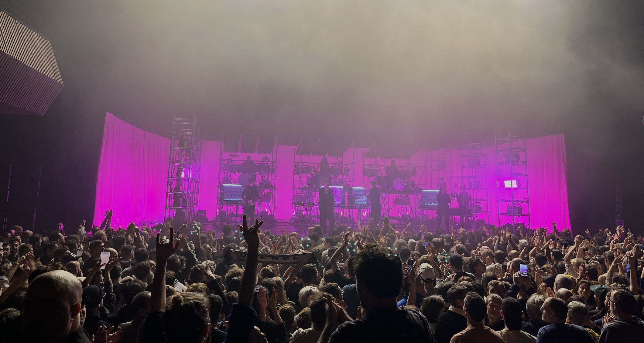 Avant-dernière date d’une mini-tournée européenne passée par la Belgique, les Pays-Bas et l’Angleterre, le groupe belge se produisait à Paris salle Pleyel. Un live puissant et dansant, qui tenait autant du concert de rock que du DJ-set.